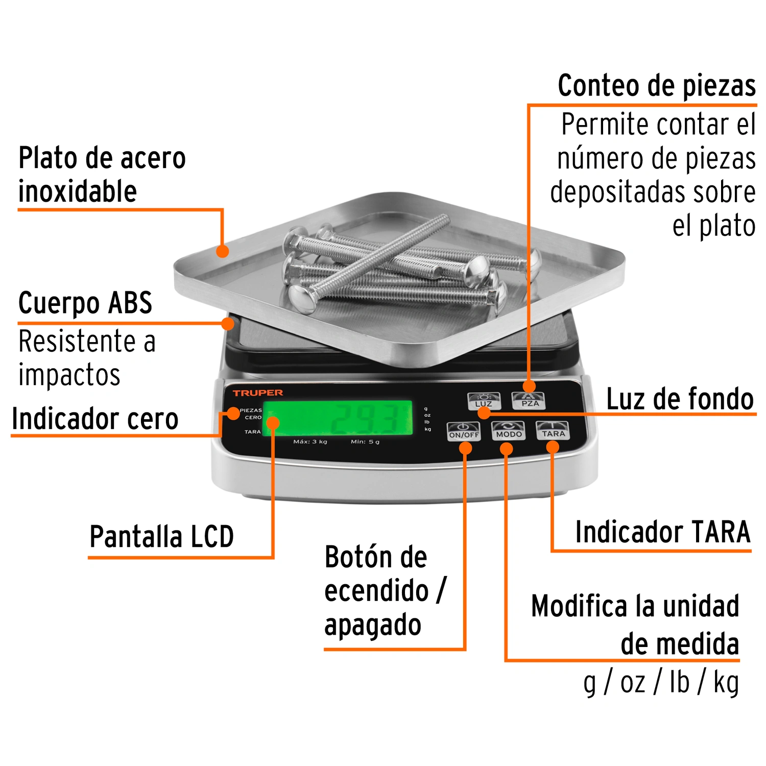 | Unidad de medida | kg / g / oz / lb |