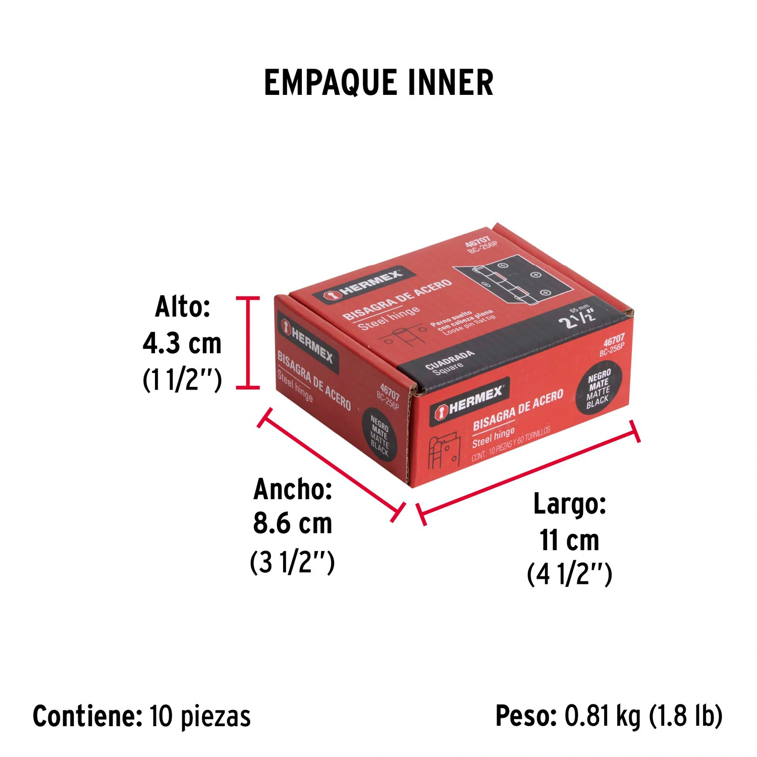 | Medida | 2 1/2" (65 mm) |