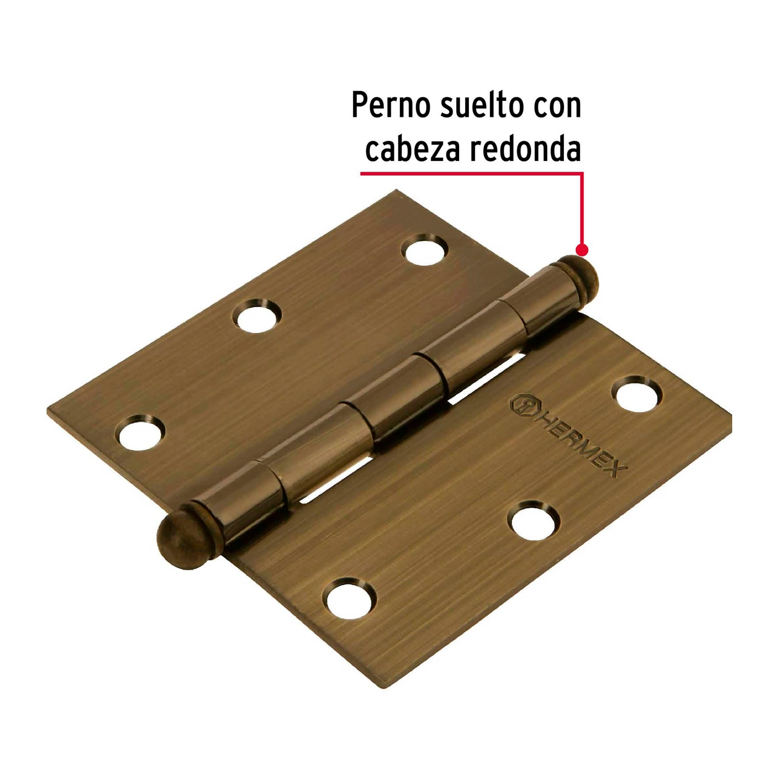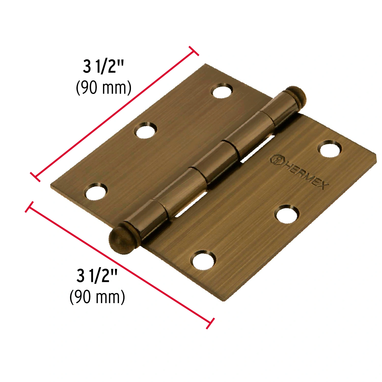 Bisagra cuadrada 3-1/2", latón antiguo, cabeza redonda 43247