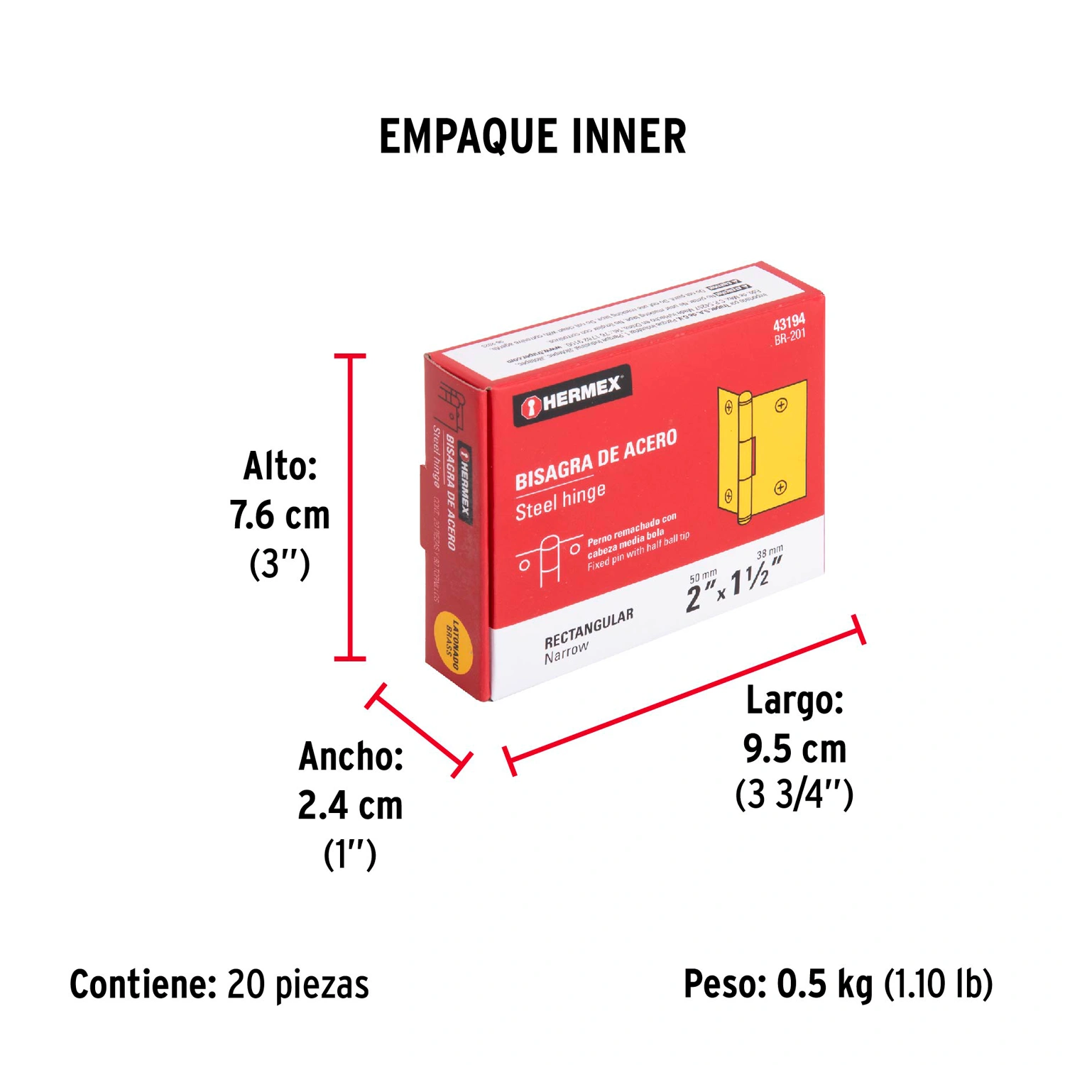 | Medida (largo x ancho) | 2" x 1-1/2" (50 x 38 mm) |
