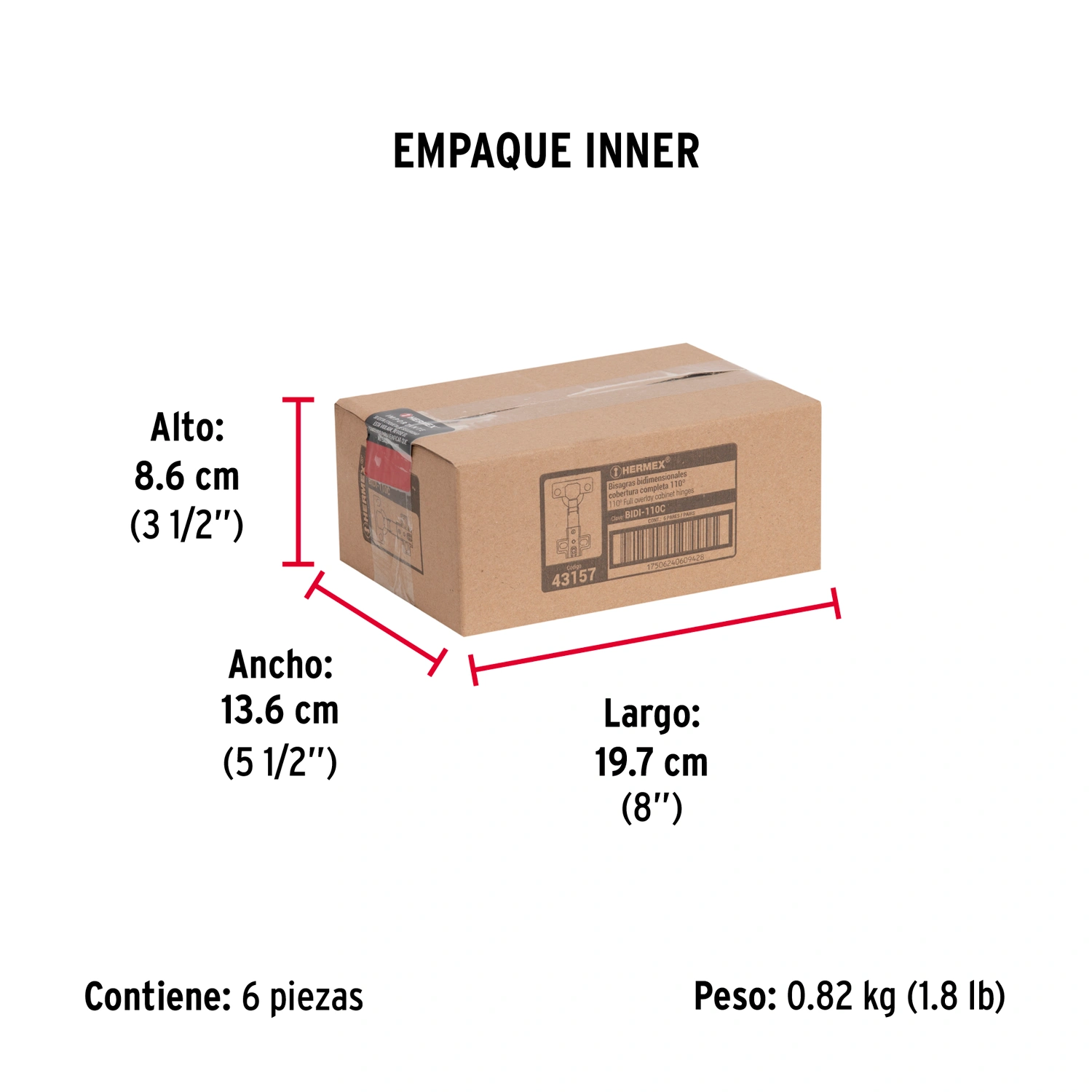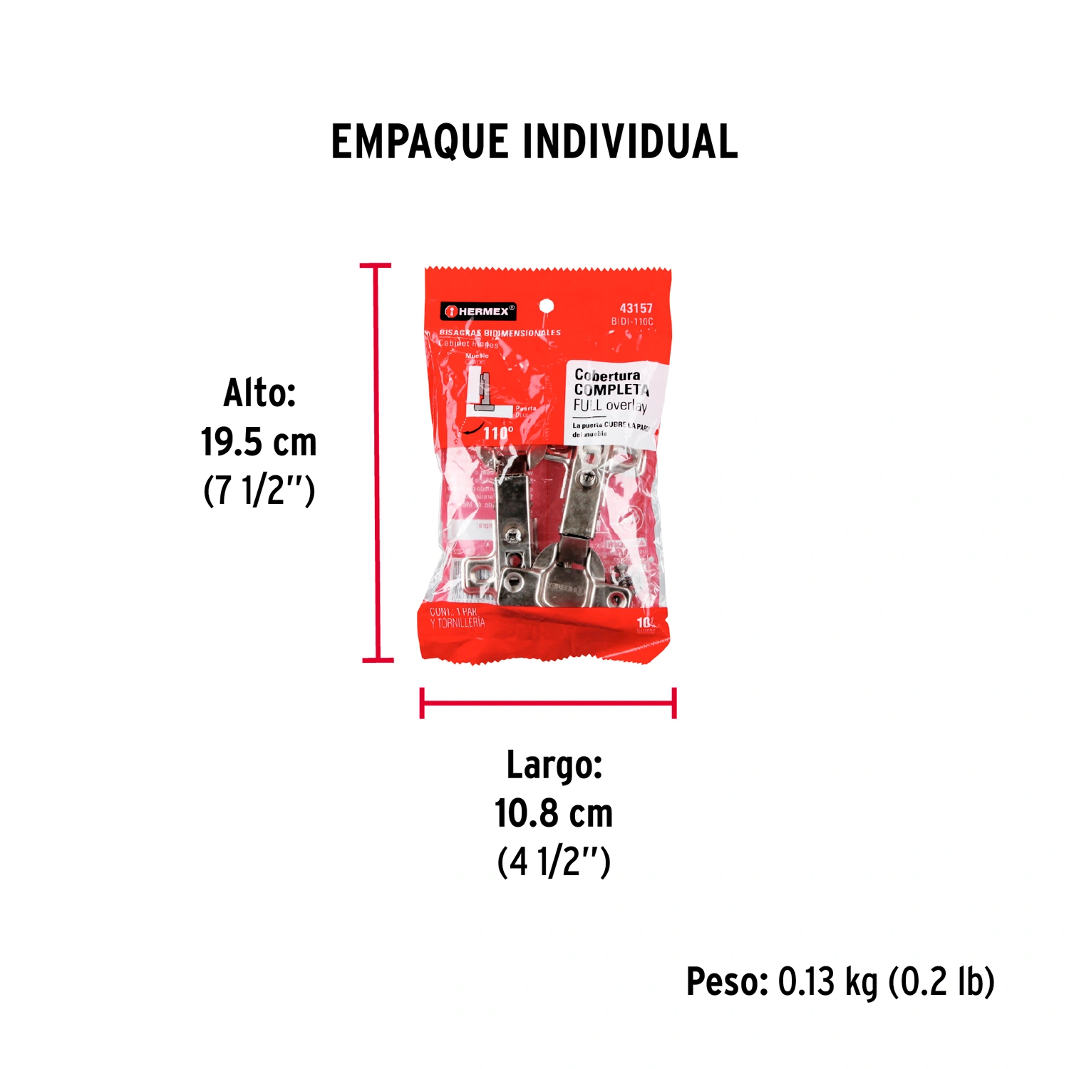 | Empaque individual | Bolsa con 2 piezas |