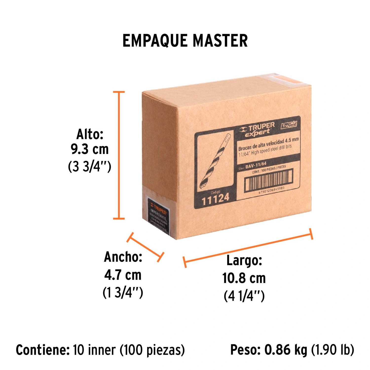 10 brocas de 11/64" de diámetro y 3" de largo