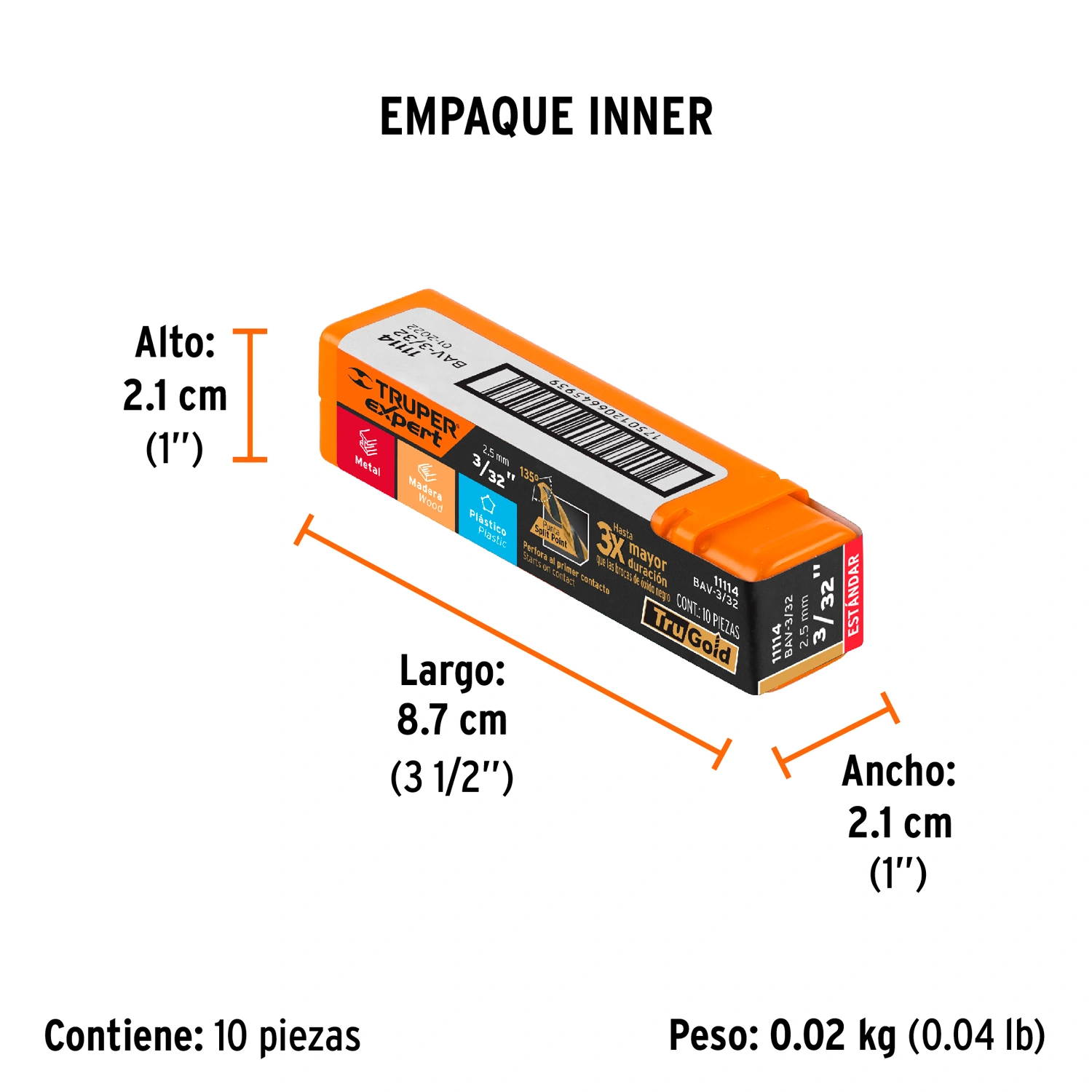 | Largo total | 2" |