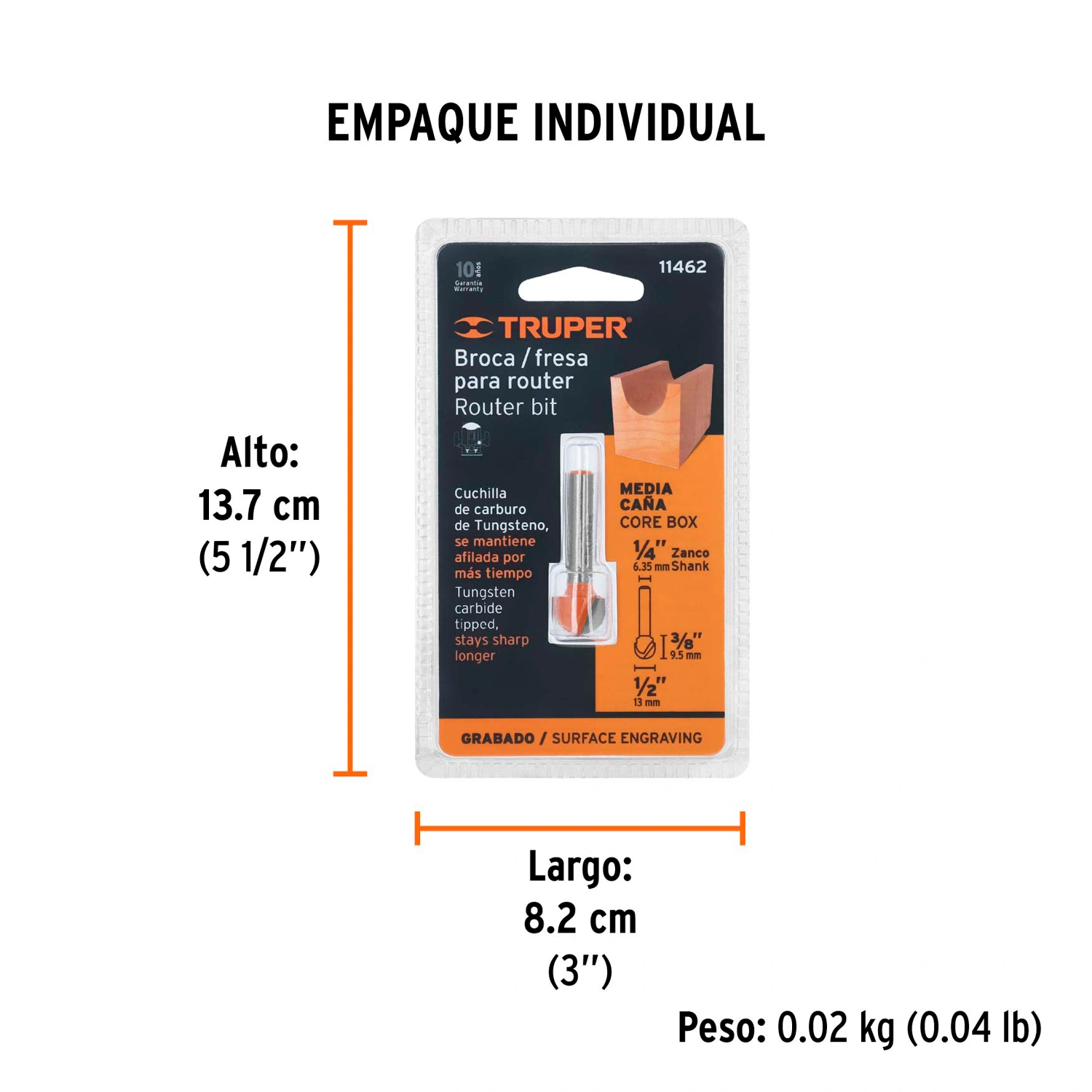 | Diámetro de corte | 1/2" (13 mm) |