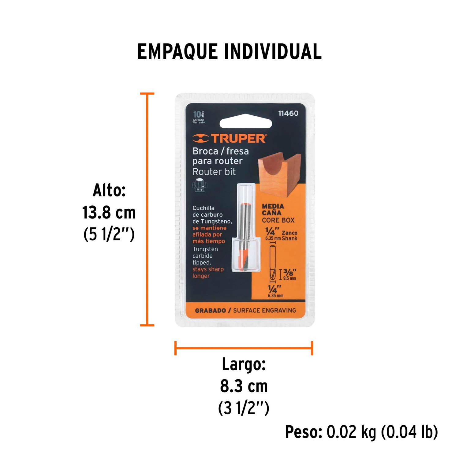 | Diámetro de corte | 1/4" (6.5 mm) |