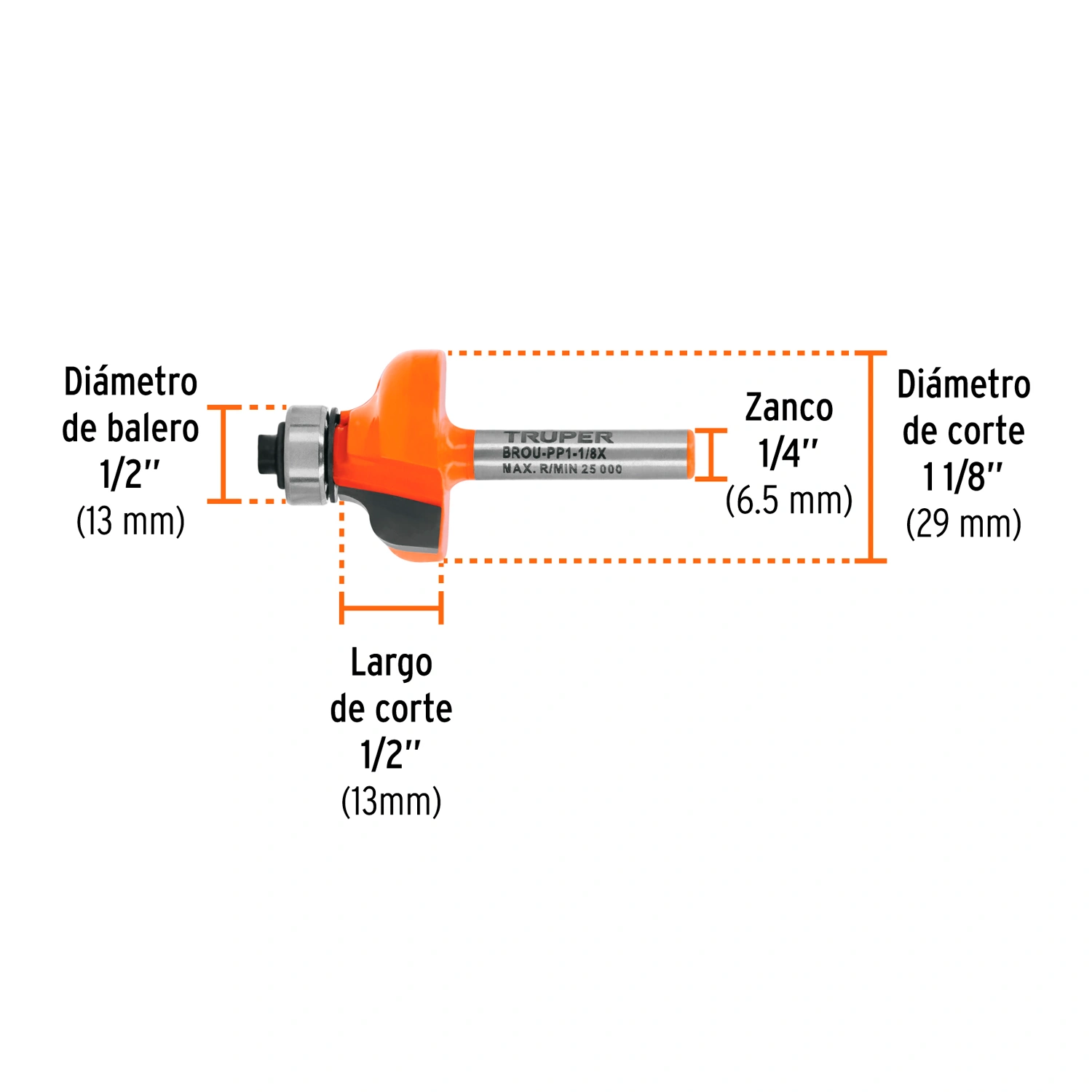 | Diámetro de corte | 1 1/8" (29 mm) |