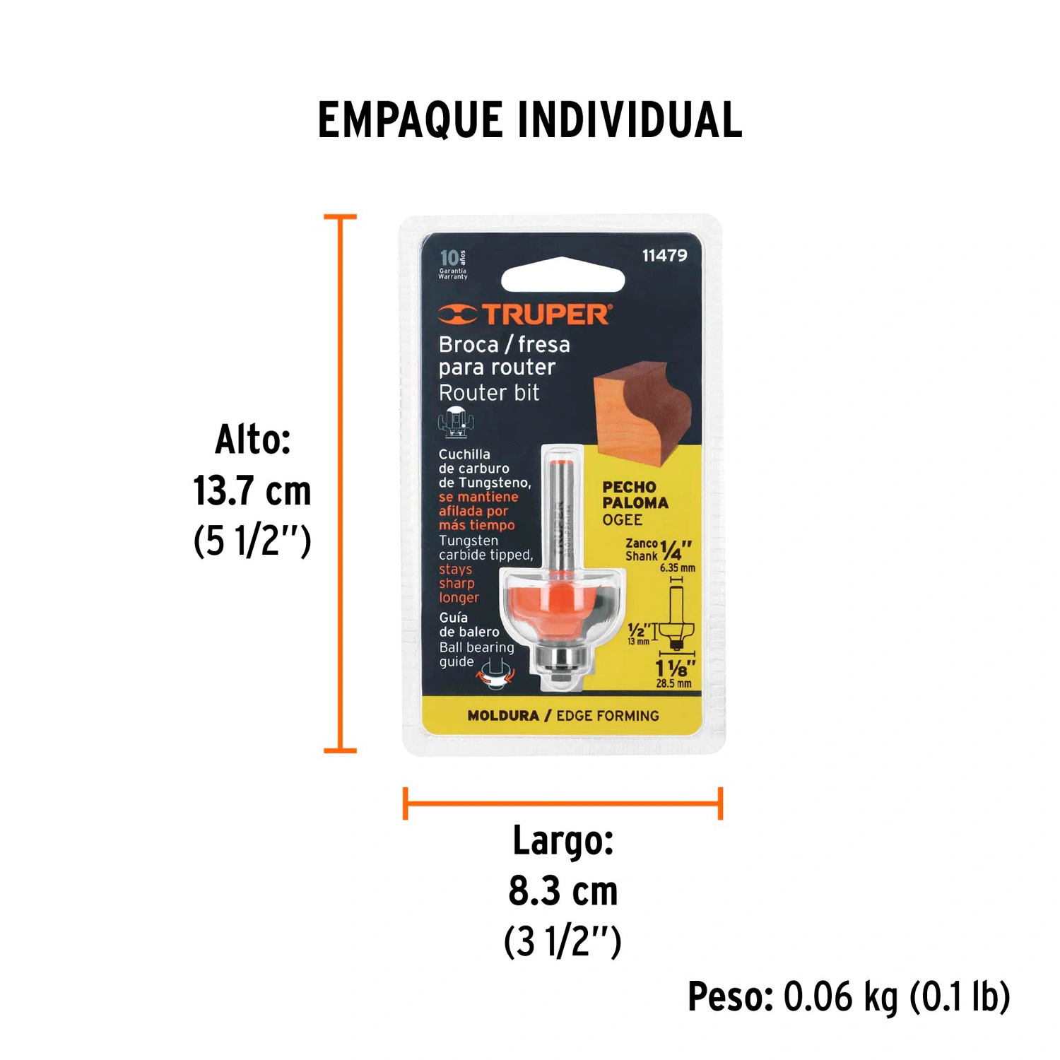 | Largo de corte | 1/2" (13 mm) |