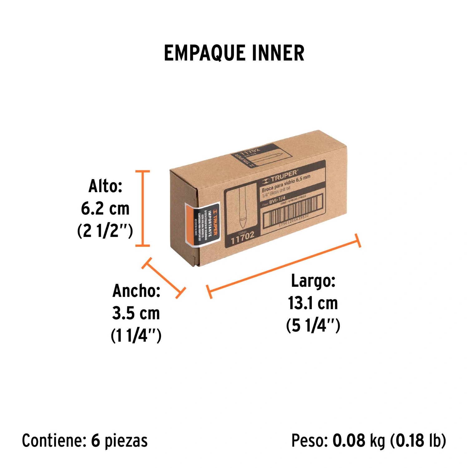 | Diámetro | 1/4" (6.5 mm) |