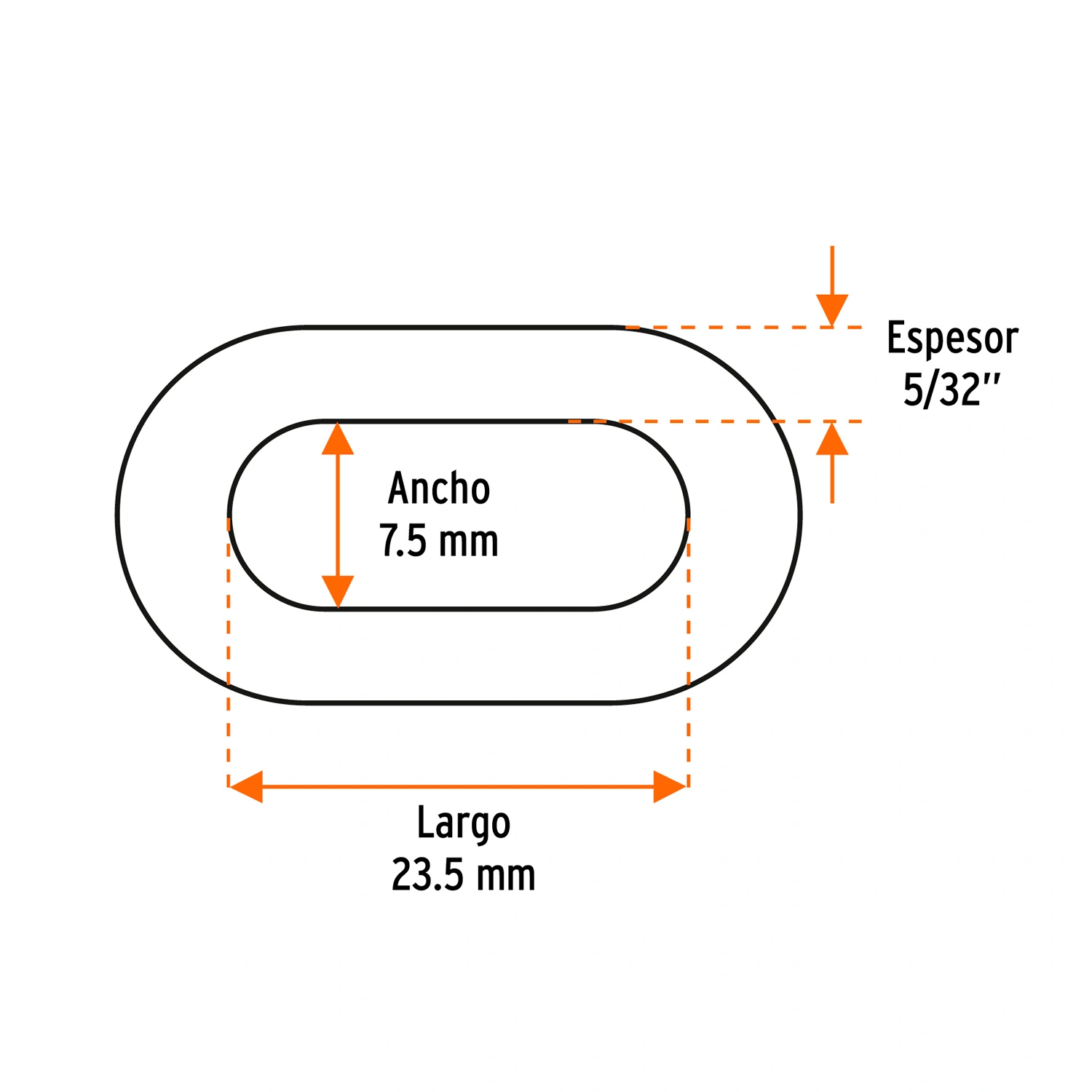 | Eslabón (largo x ancho) | 23.5 mm x 7.5 mm |
