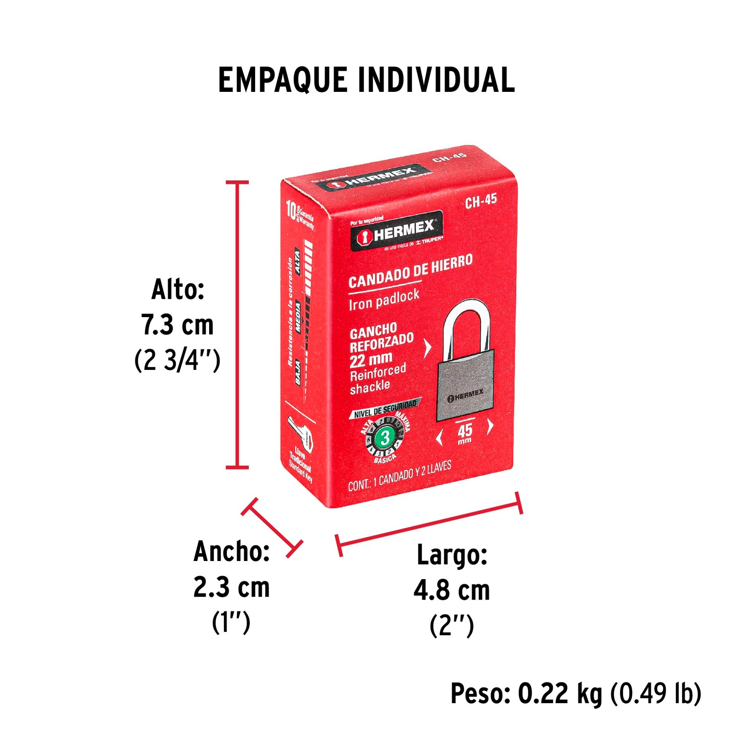 | Dimensiones del gancho (alto x ancho x diámetro) | 22 mm x 24 mm x 7 mm |