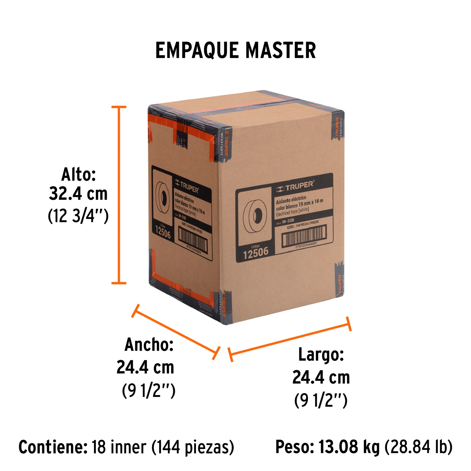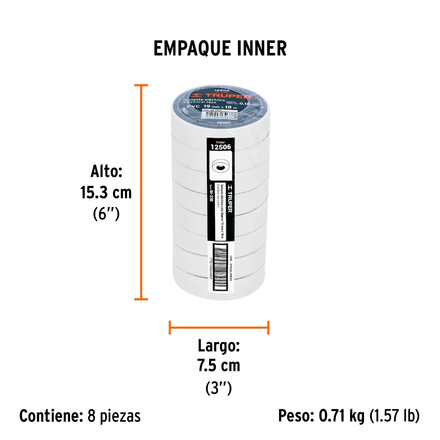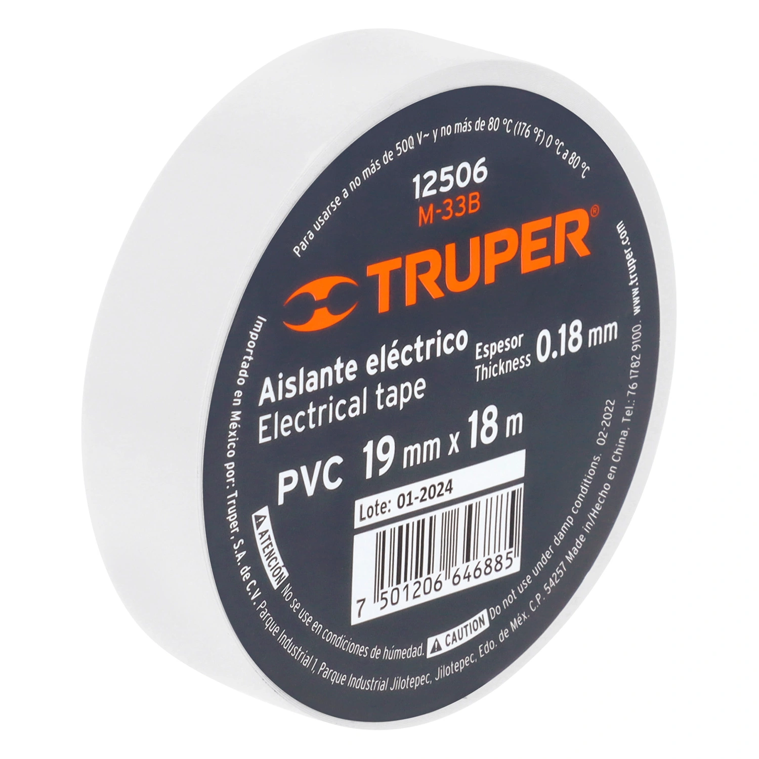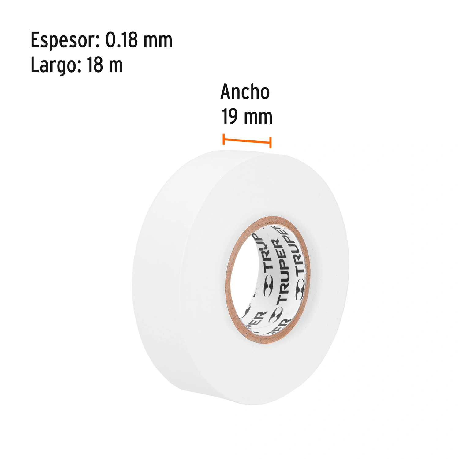 Cinta de aislar de 18 m x 19 mm, blanca, Truper 12506