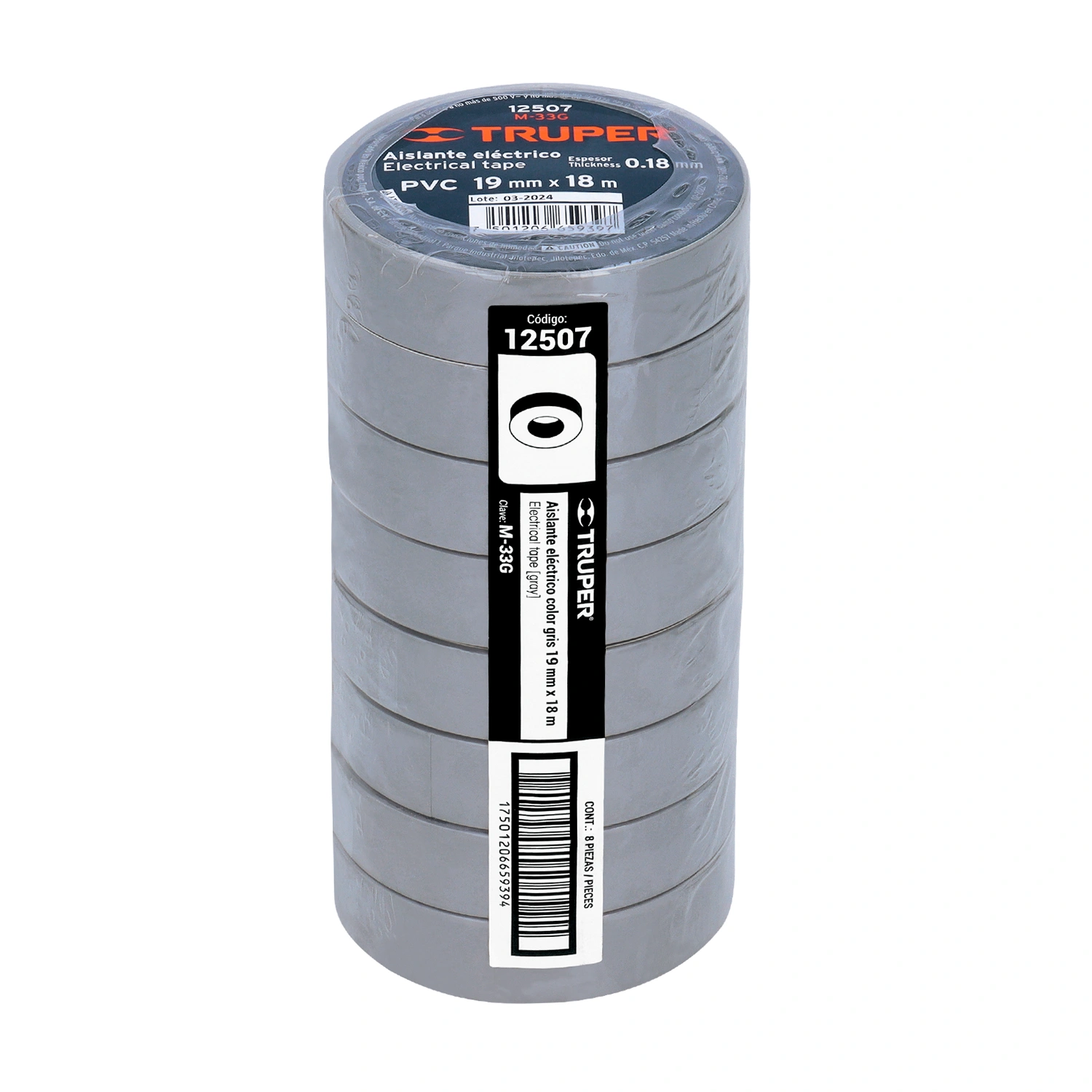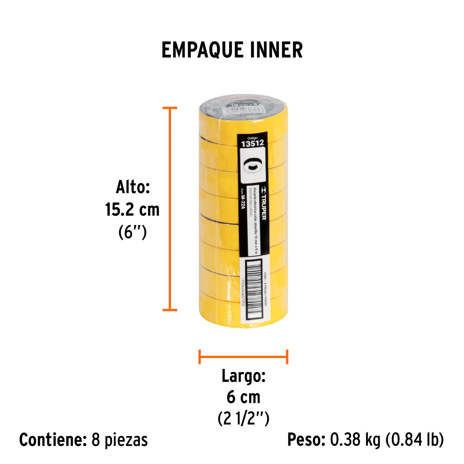 | Empaque individual | Encogible con 8 piezas del mismo color |