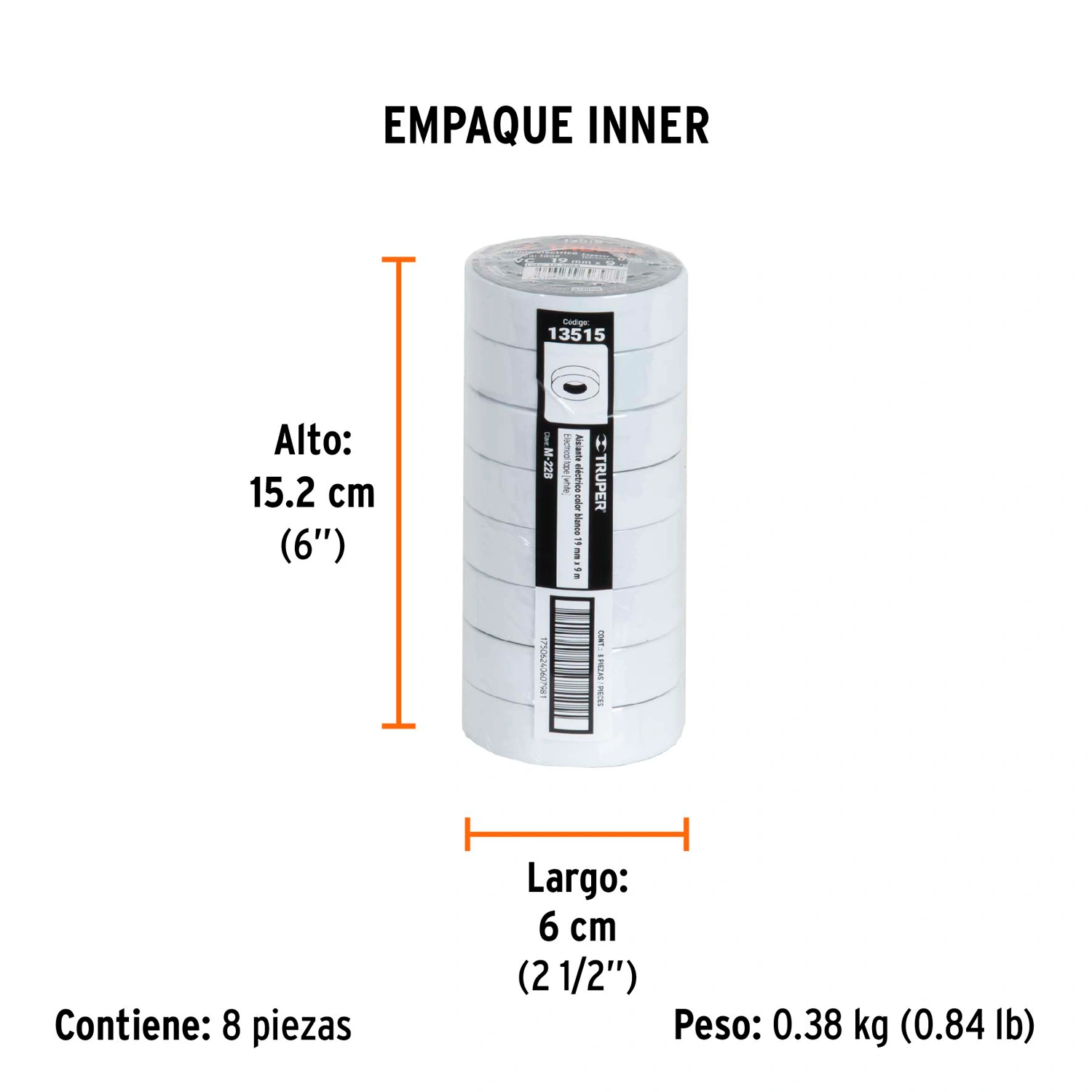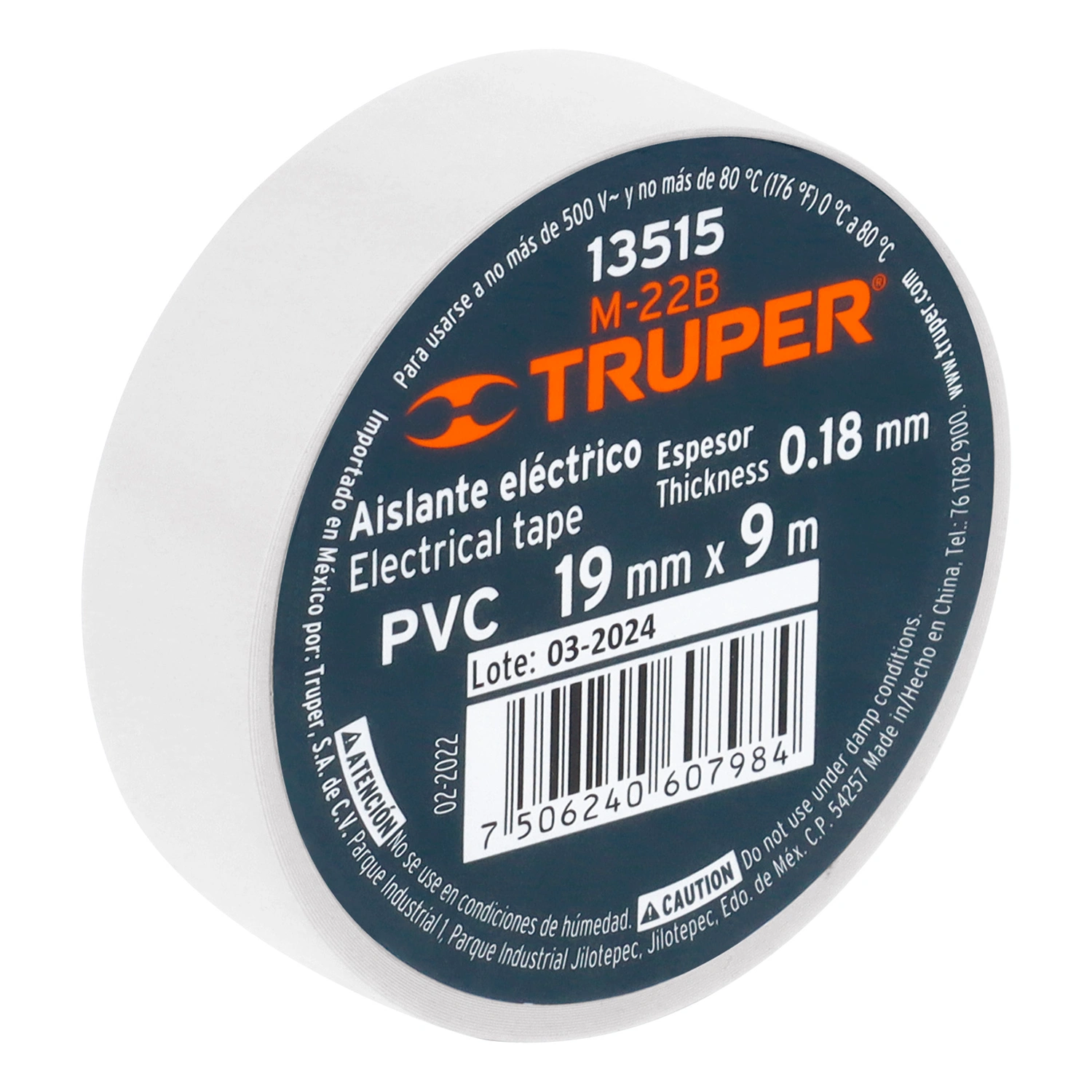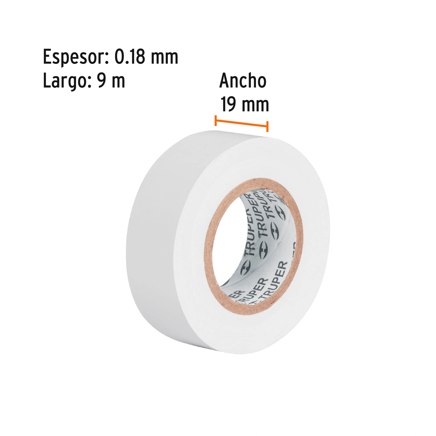 Cinta de aislar de 9 m x 19 mm, blanca, Truper 13515