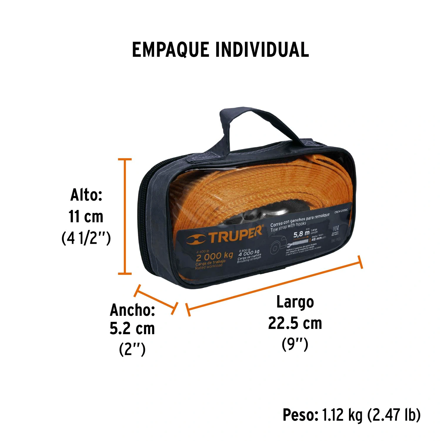 | Carga de ruptura | 4,000 kg |