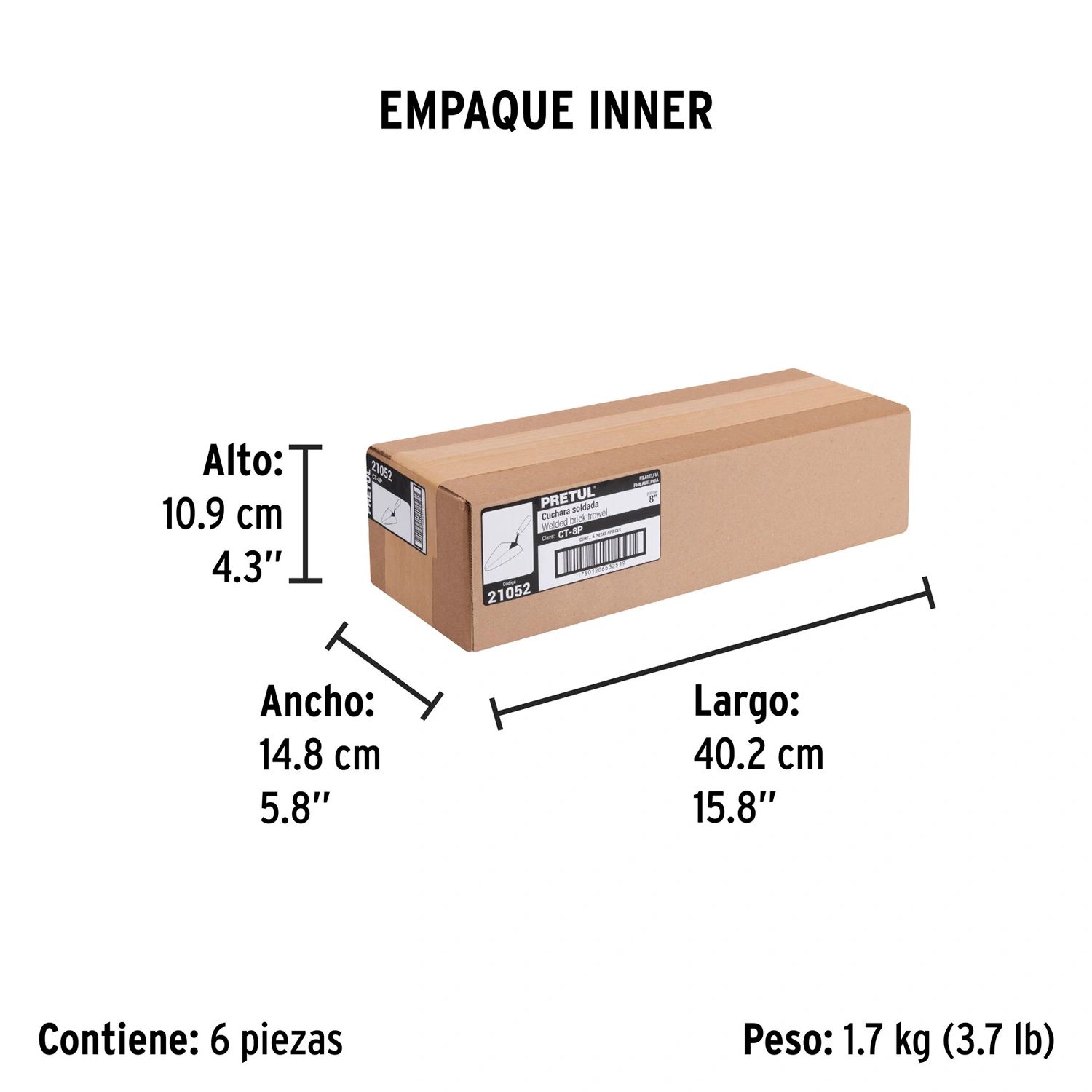 | Medida | 8" (20 cm) |