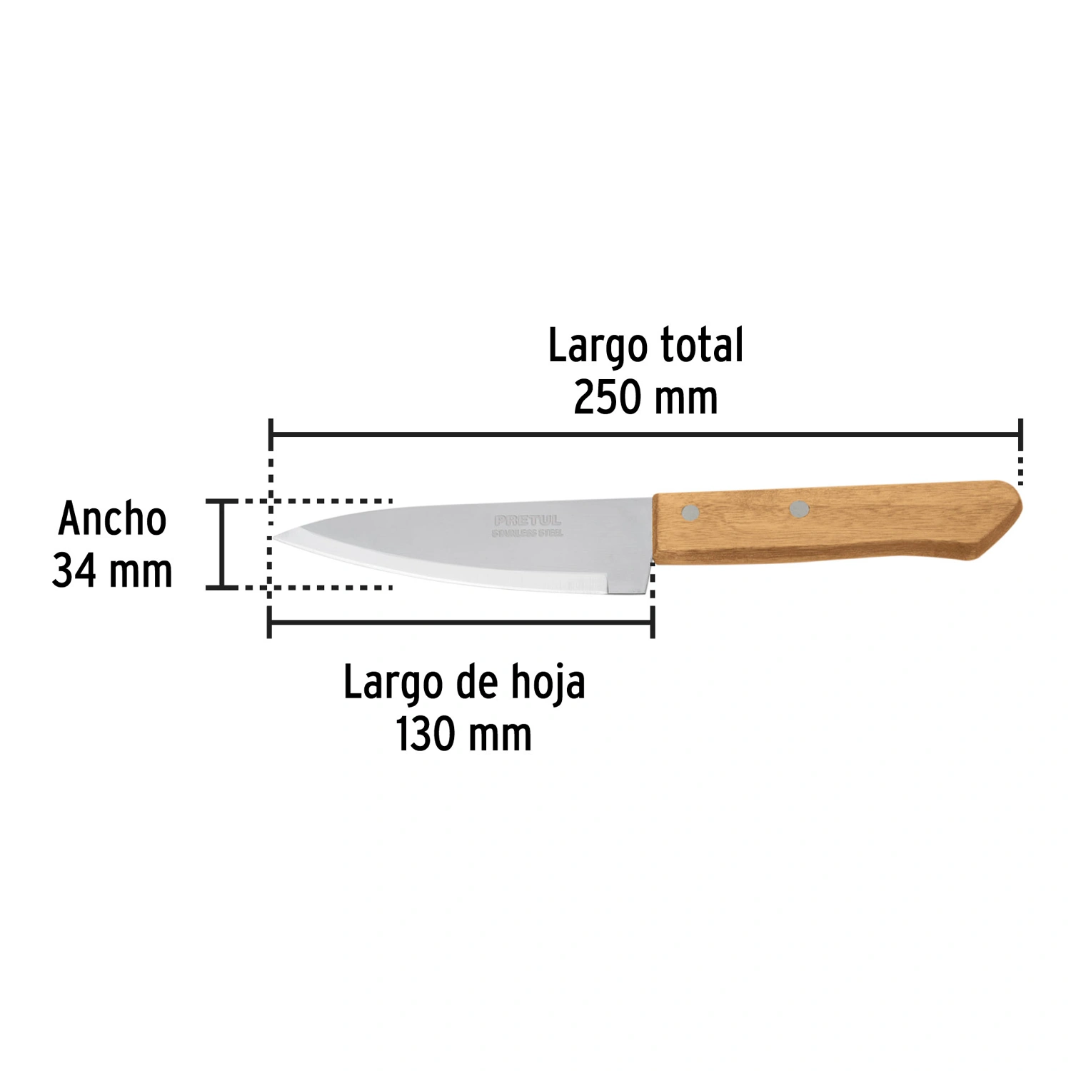 | Dimensiones (largo total x ancho) | 250 x 34 mm |