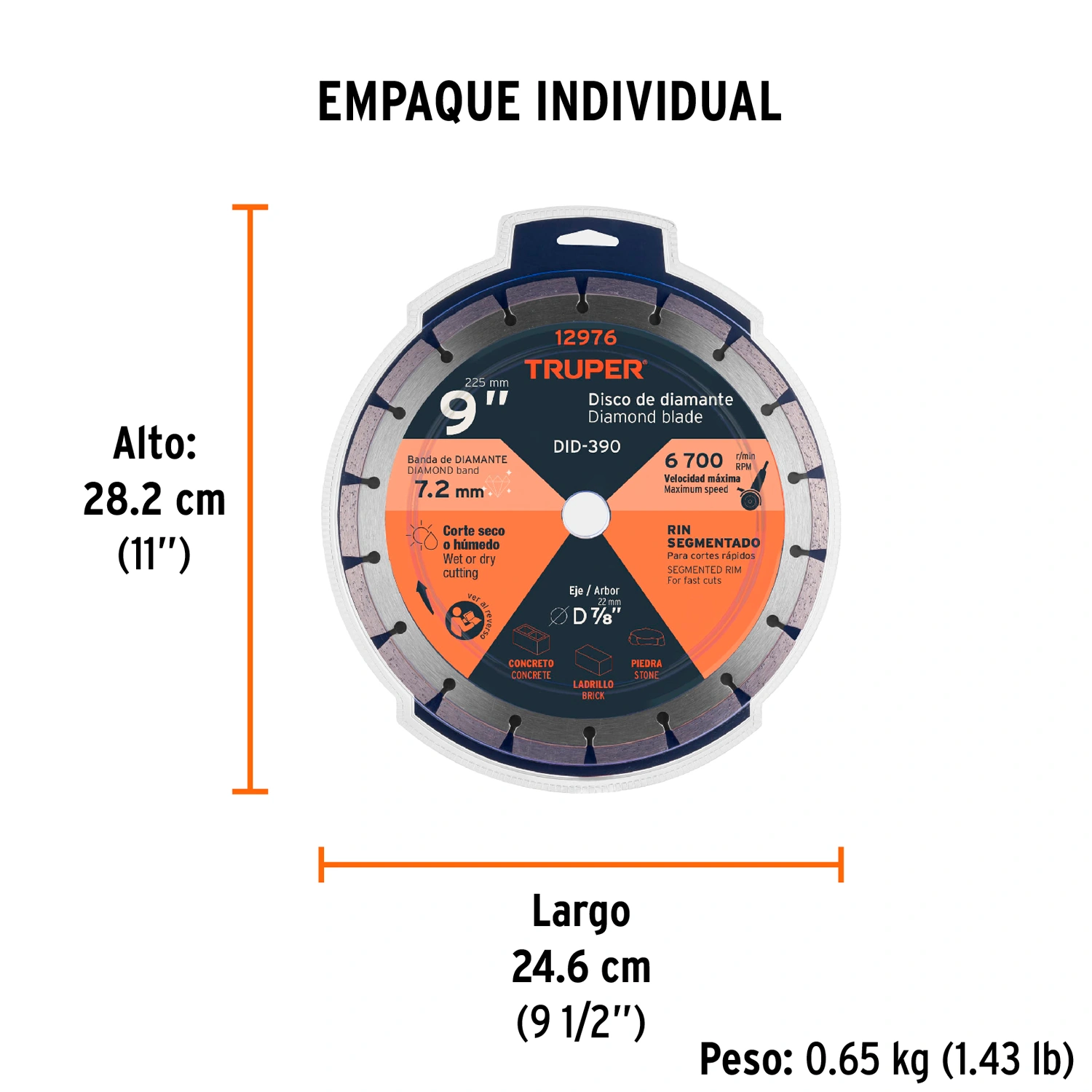 | Diámetro exterior: | 9" (230 mm) |