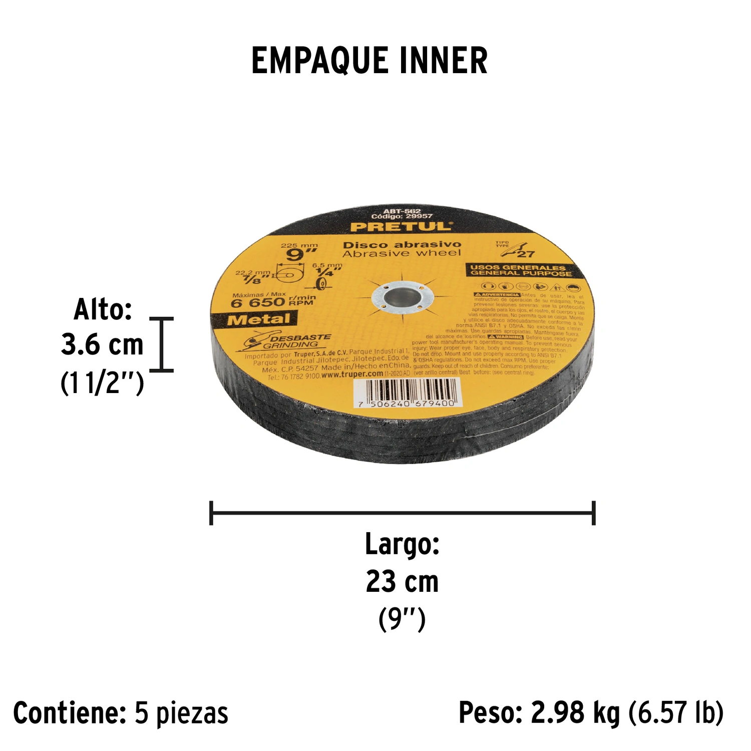 | Empaque individual: | Encogible |