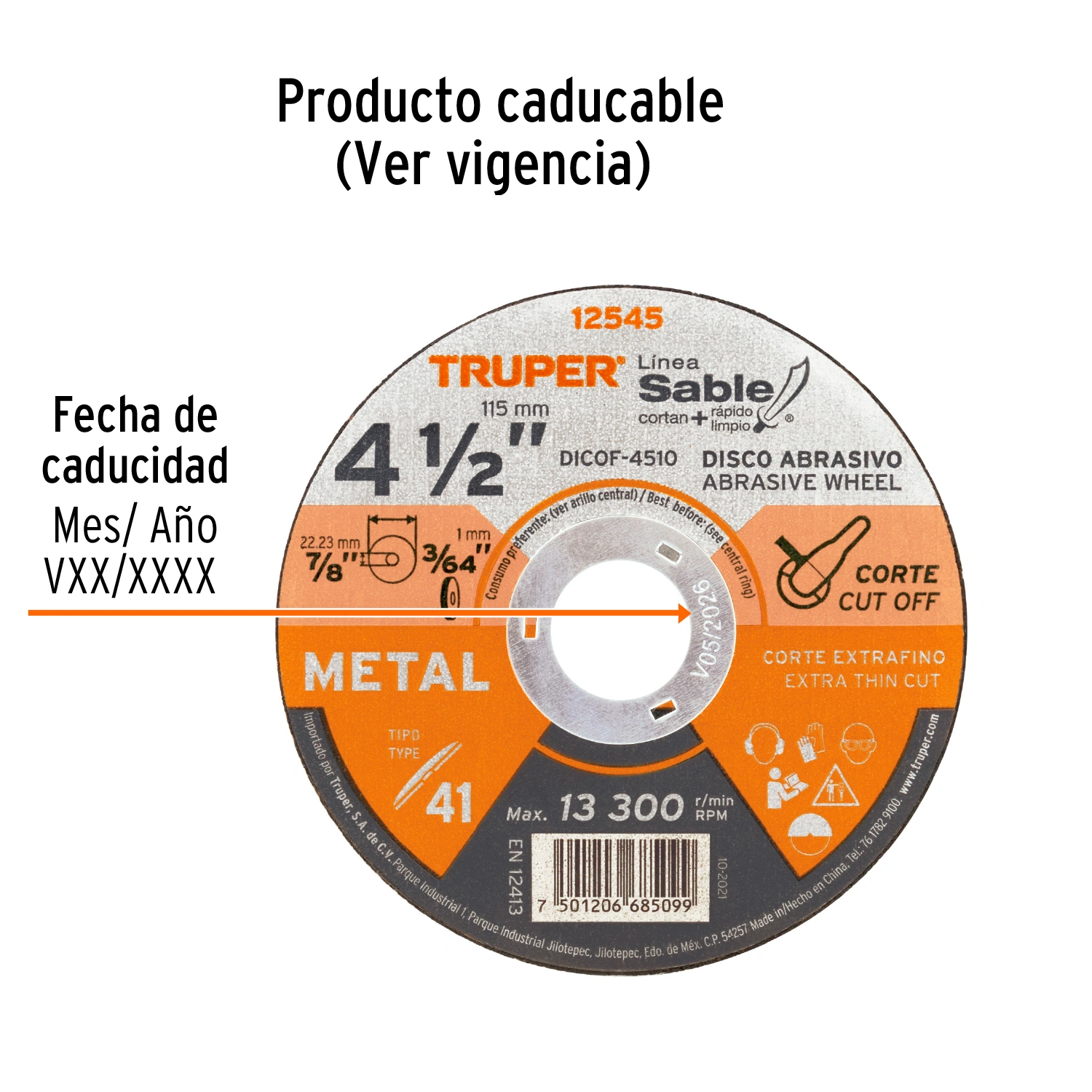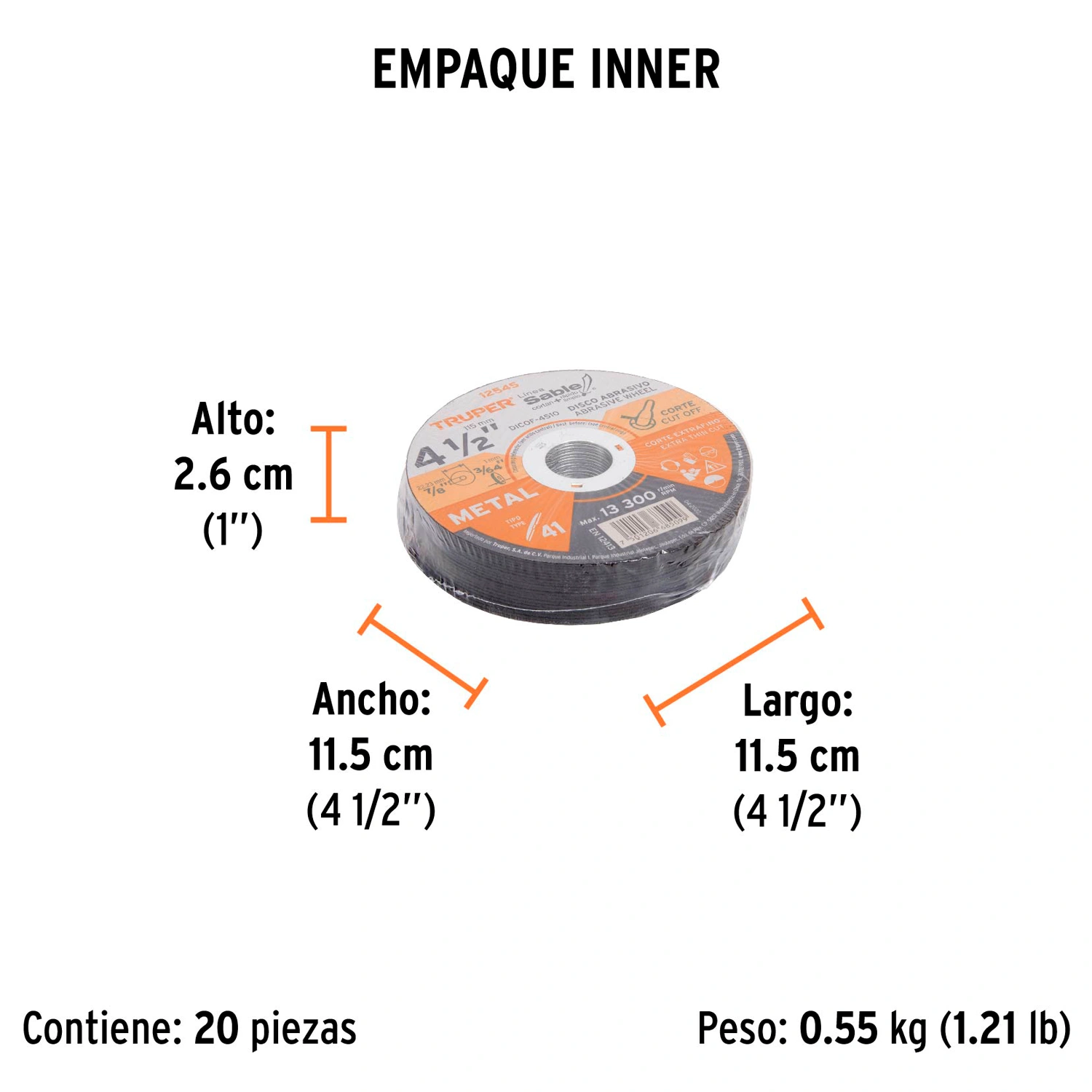 | Diámetro exterior: | 4 1/2" (115 mm) |