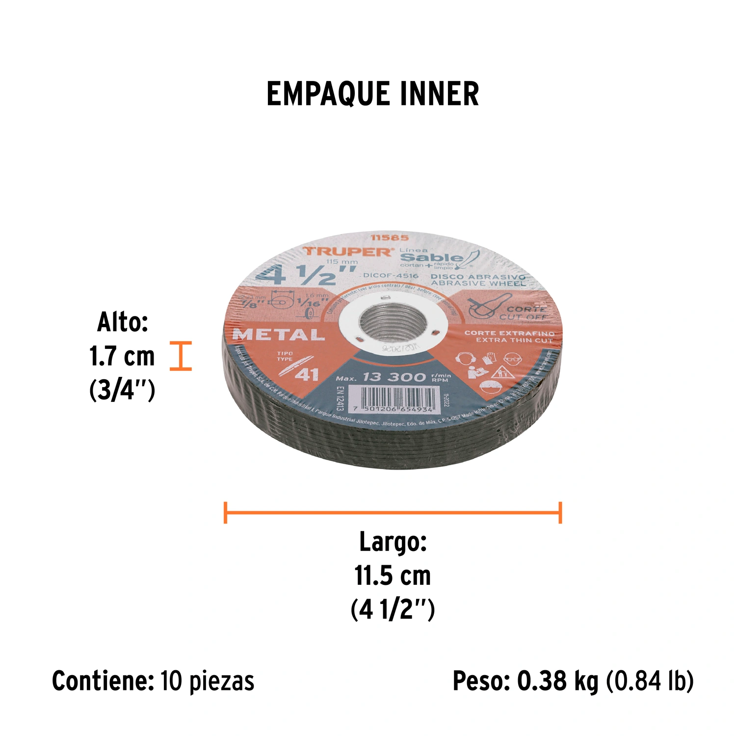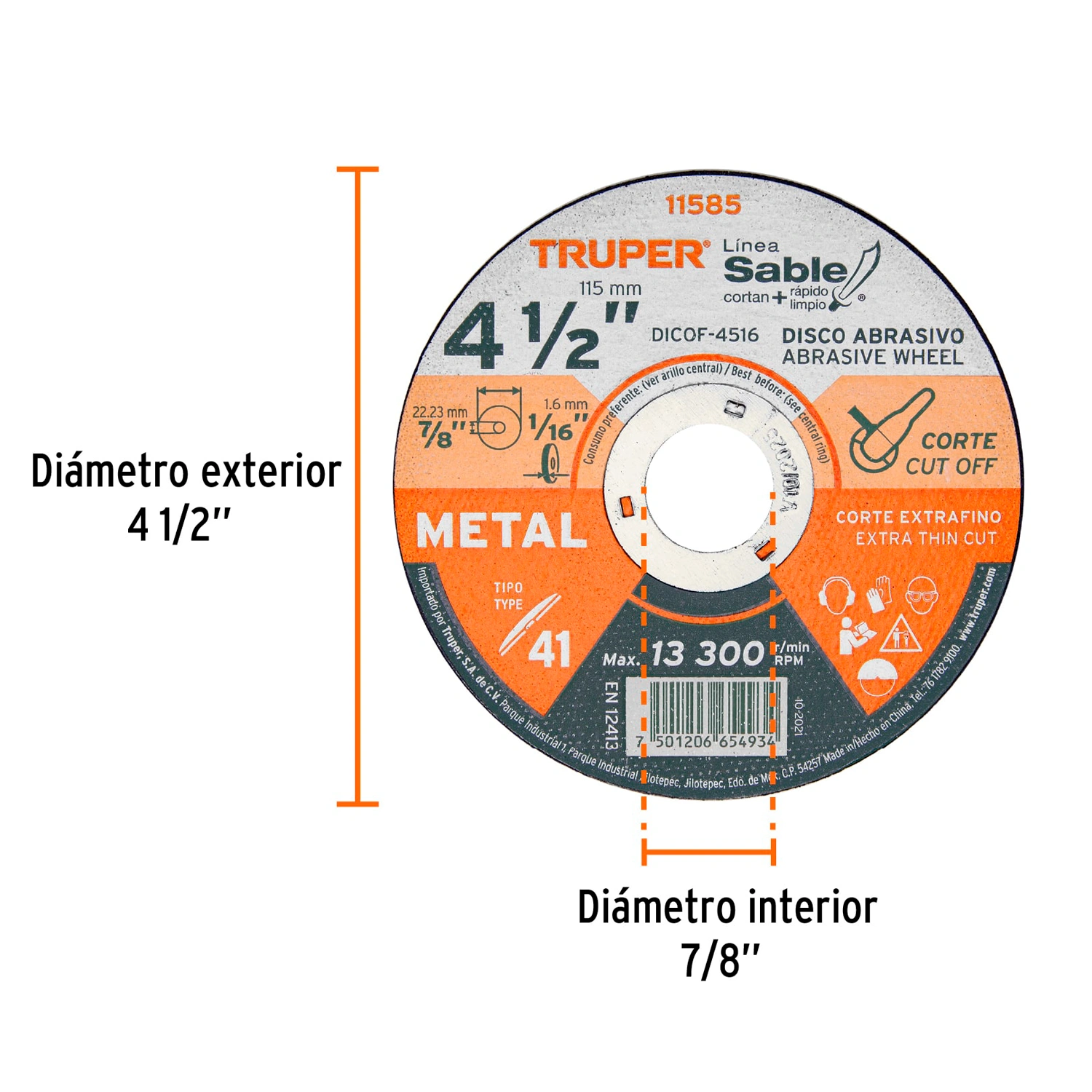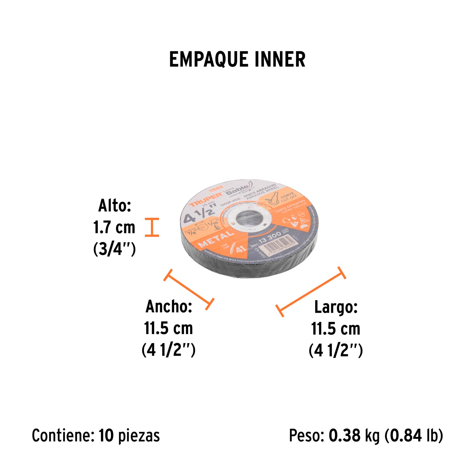 | Diámetro exterior: | 4 1/2" (115 mm) |