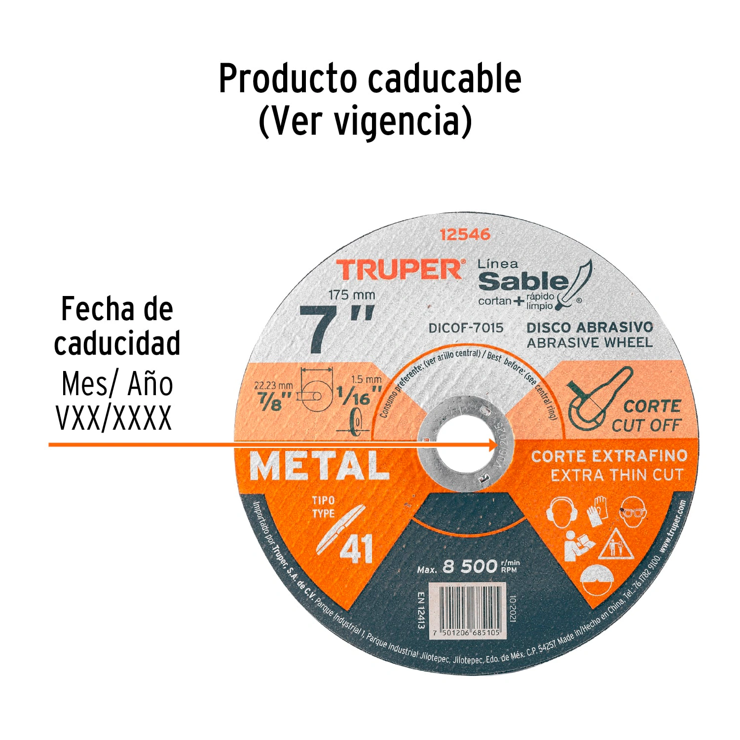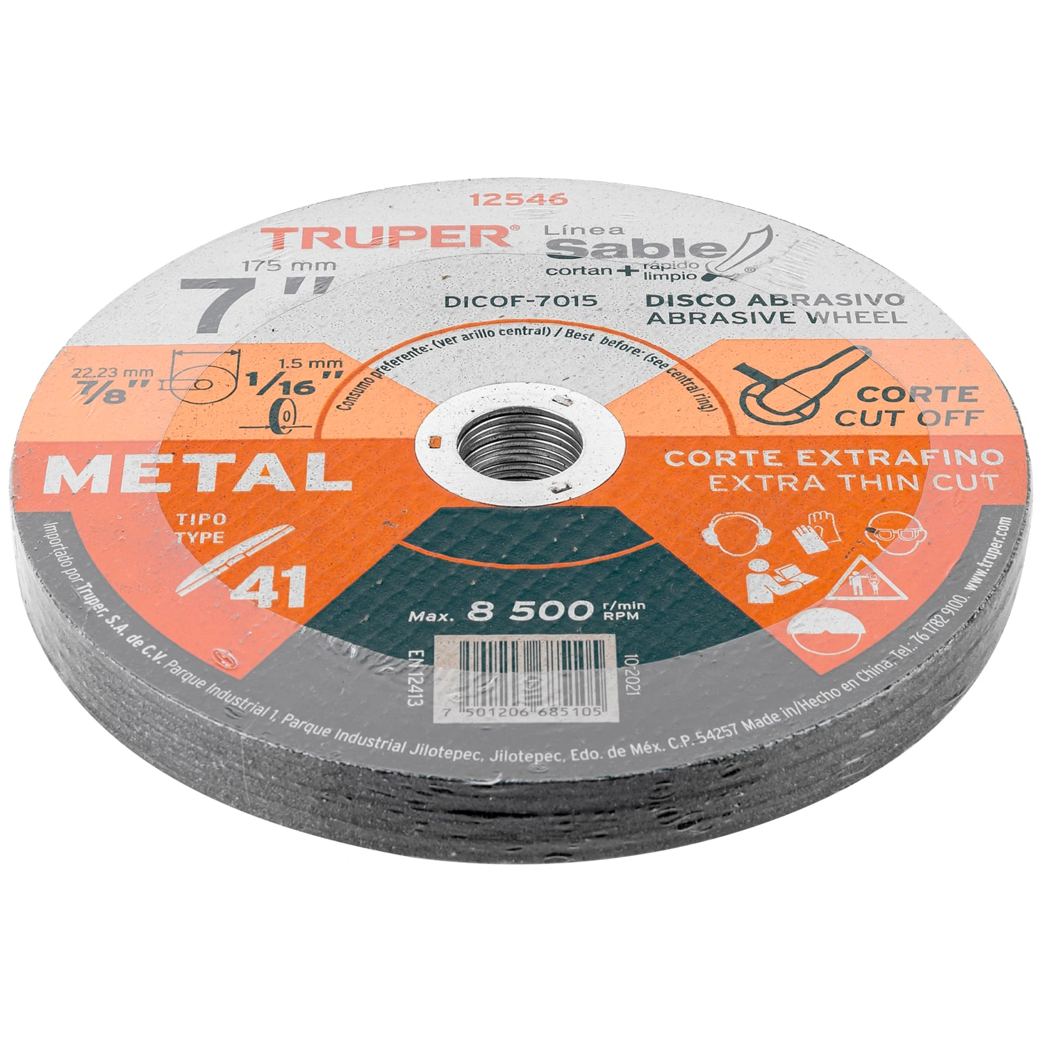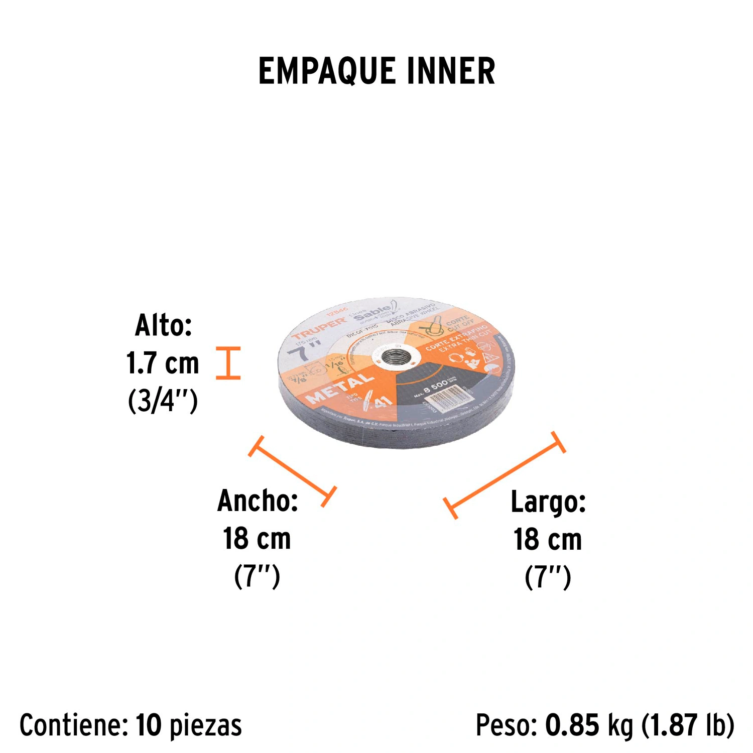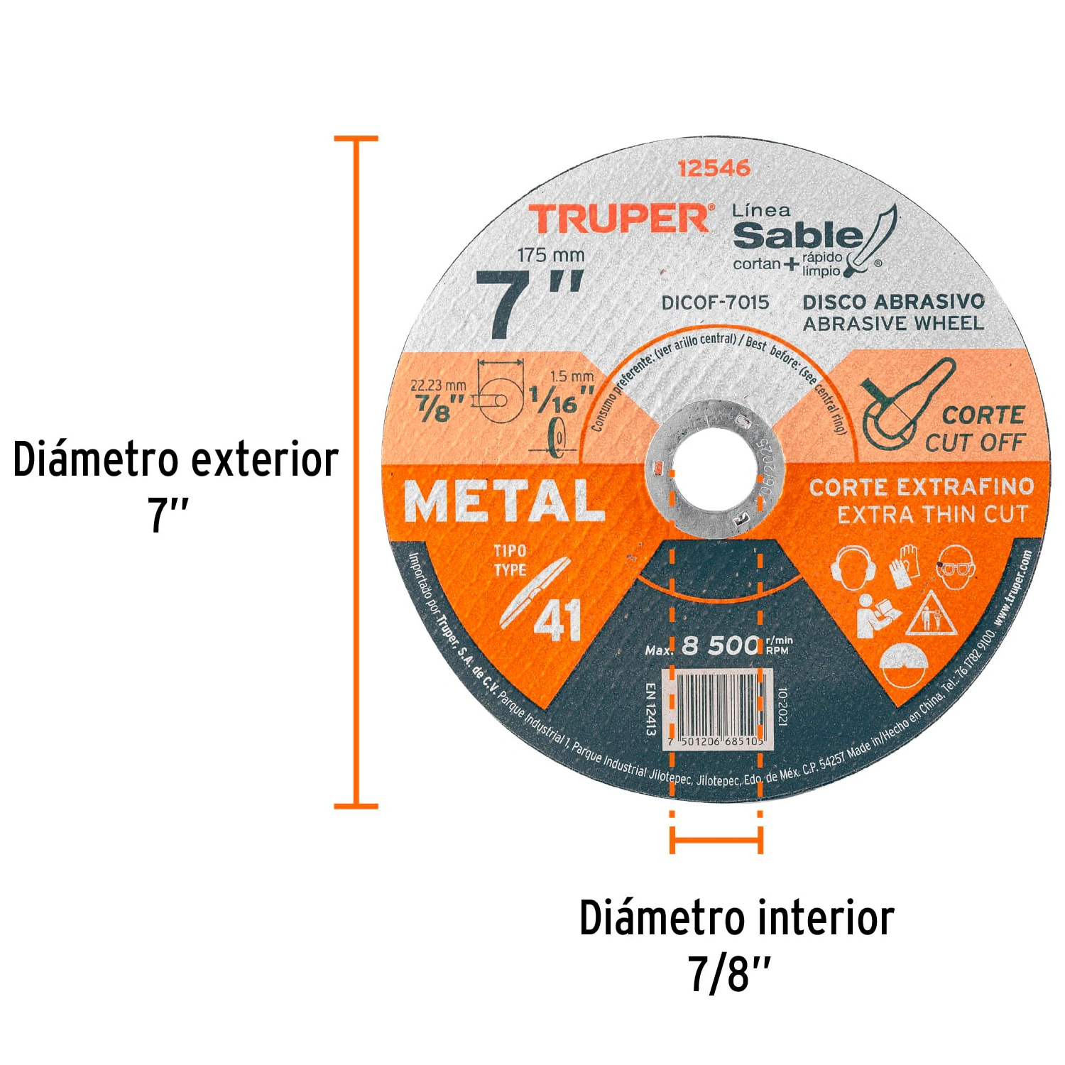 | Diámetro exterior: | 7" (175 mm) |