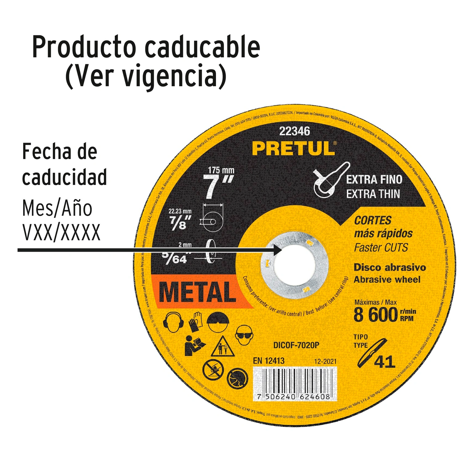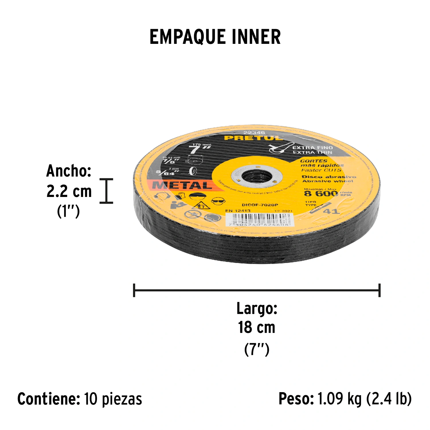 | Diámetro exterior: | 7" (175 mm) |