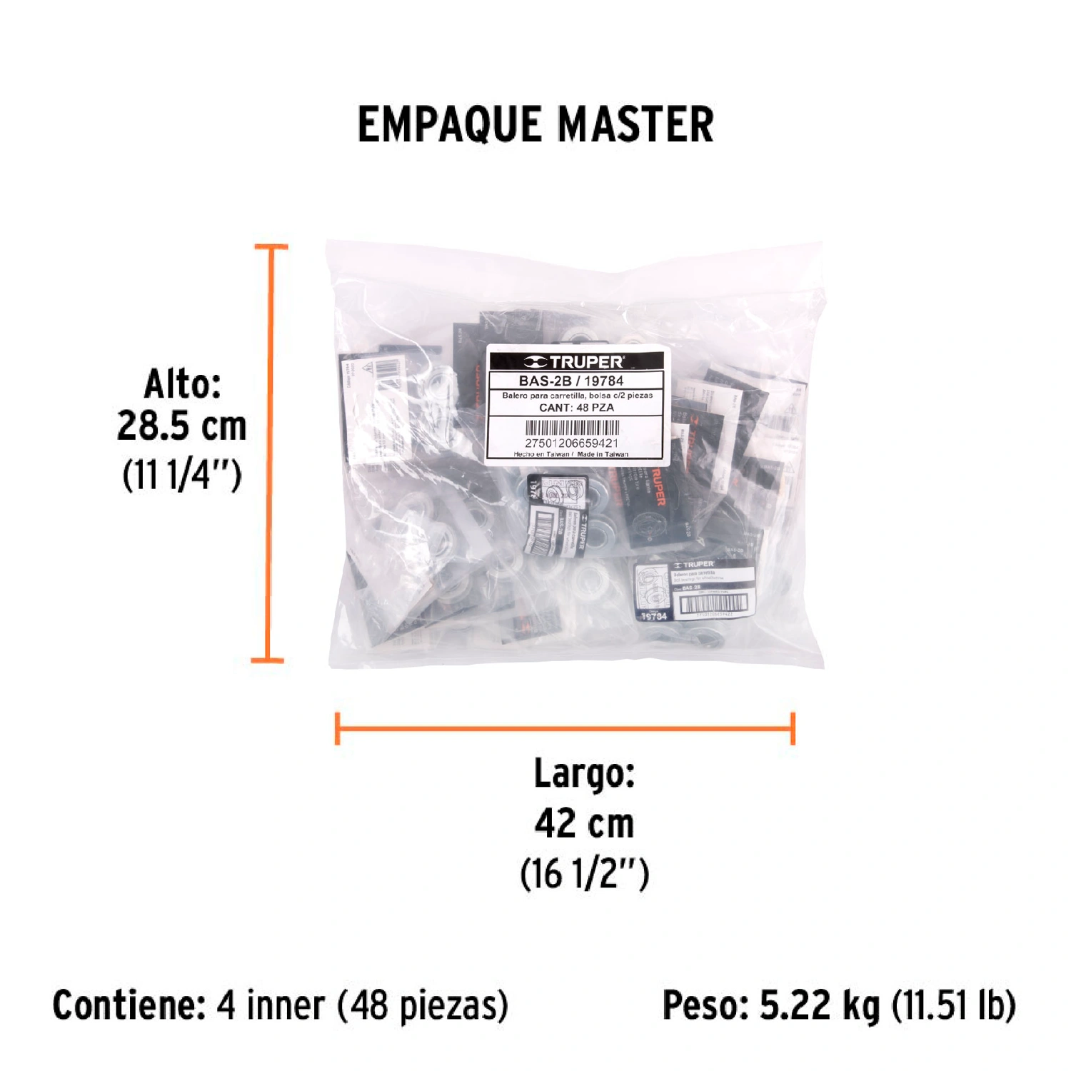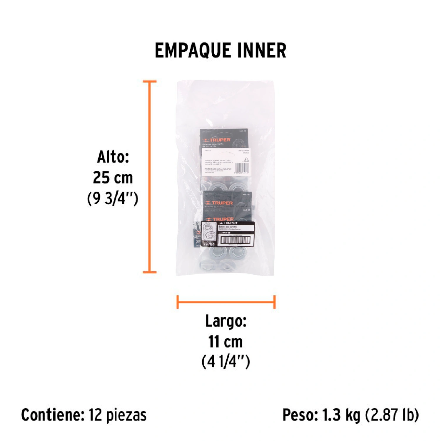 | Empaque individual | Caballete con 2 piezas |