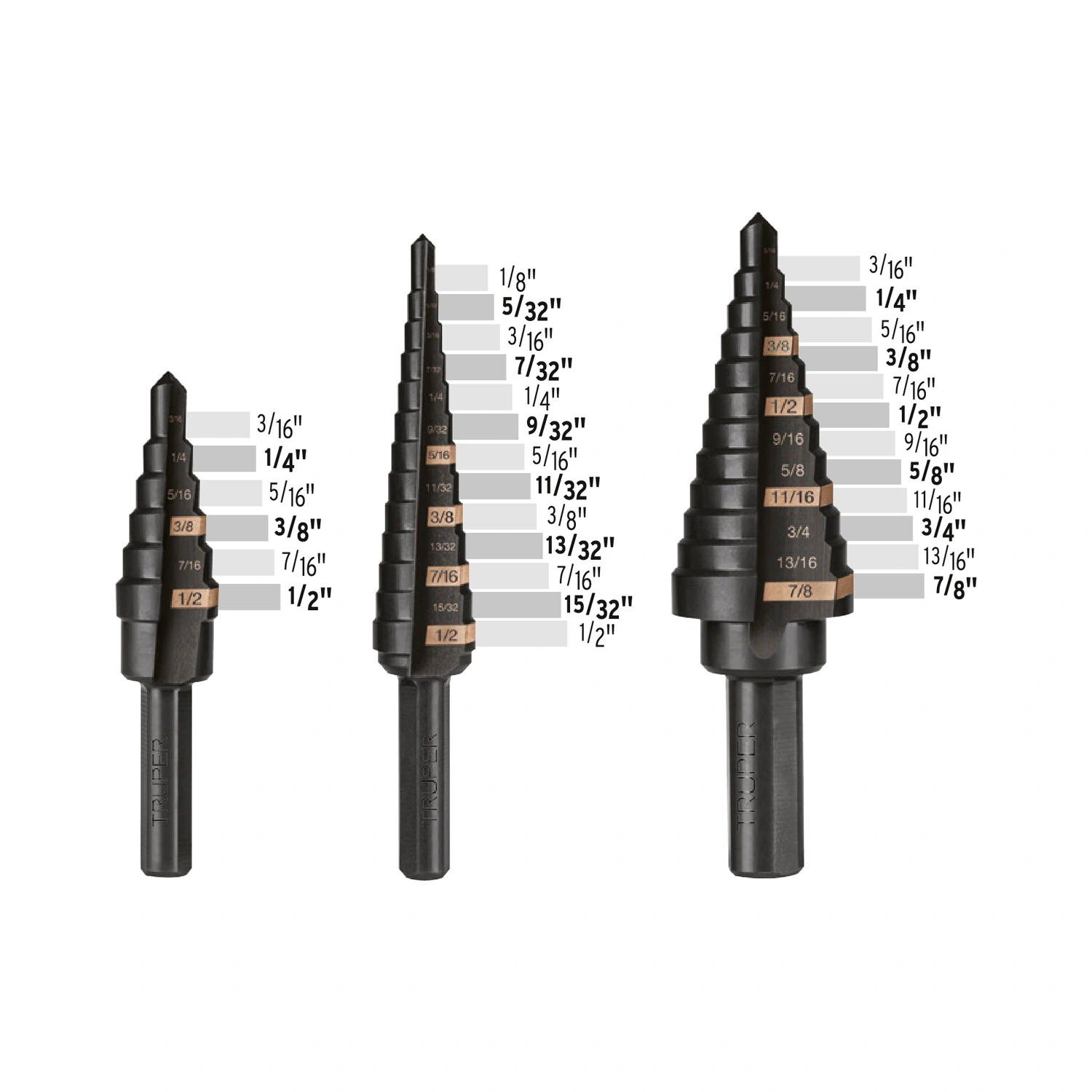 | Broca de 13 escalones | Diámetro de zanco 1/4" |