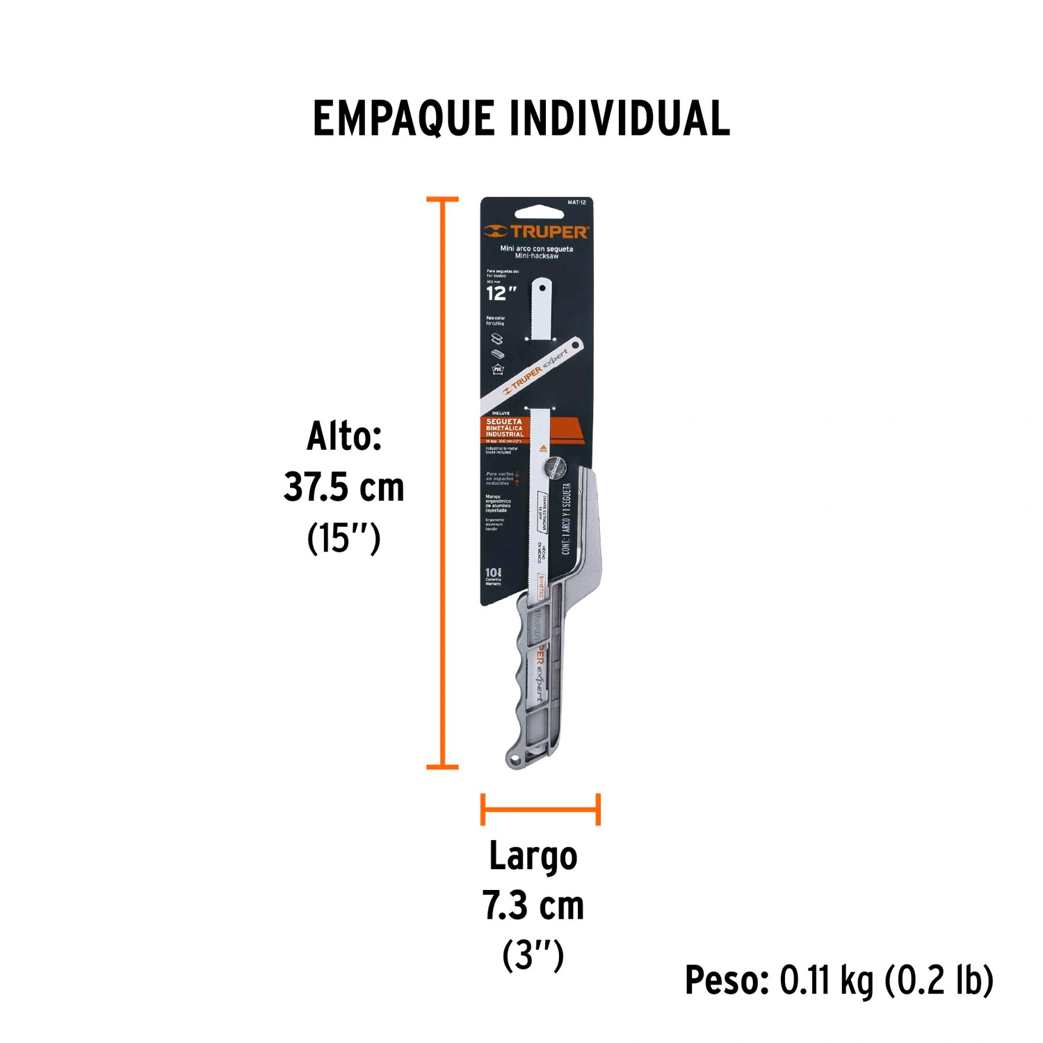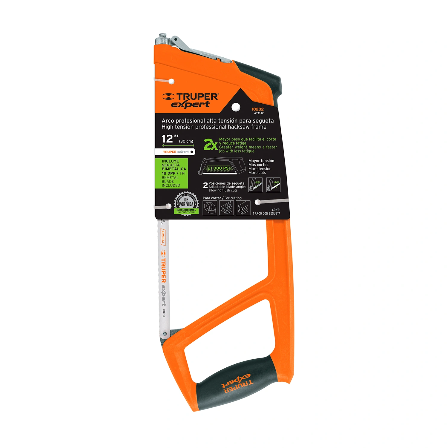 Segueta 12" (300 mm) bimetálica de 18 dpp, Truper® Expert