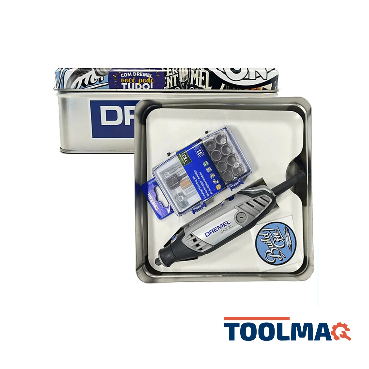 Minitorno Dremel 3000 con micro kit de accesorios y embalaje en caja metálica de edición limitada.